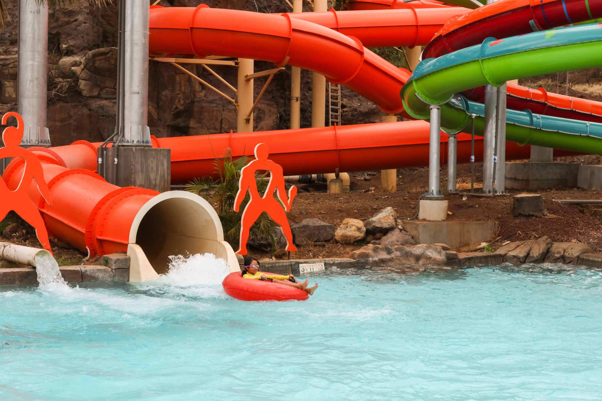 One coiling, unique slide, with equal tons of excitement for riders as they twist and turn through this complex of watery fun. The drops, dips and twists of the more than 320-foot of slides are not for the faint of heart on this adrenaline-pumping ride. Grab your tube and experience the rush of four different slides that takes you 4 ½ stories down a cliff.