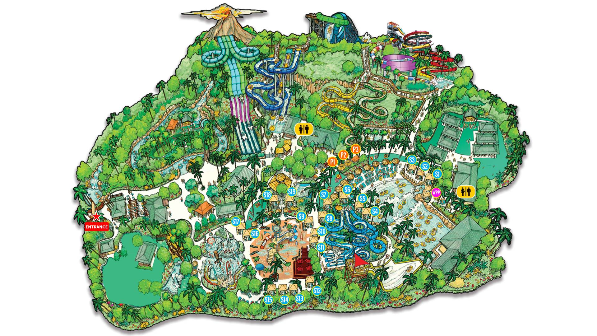 Stay cool, comfortable, and stress-free! Our Cabana Map Guide makes it easy to find the perfect shaded cabana where you and your guests can relax, recharge, and enjoy the park to the fullest.