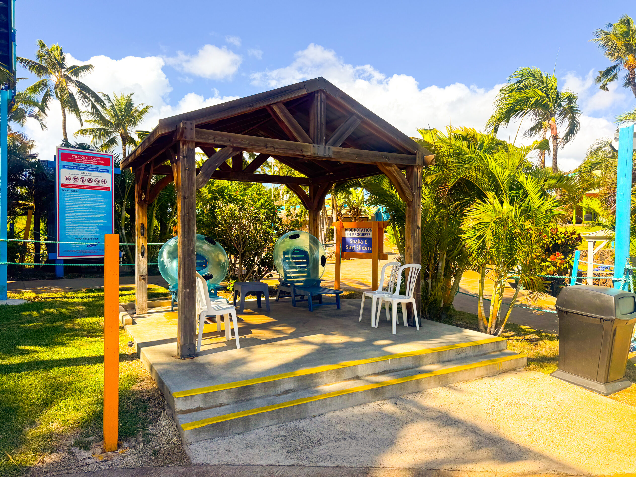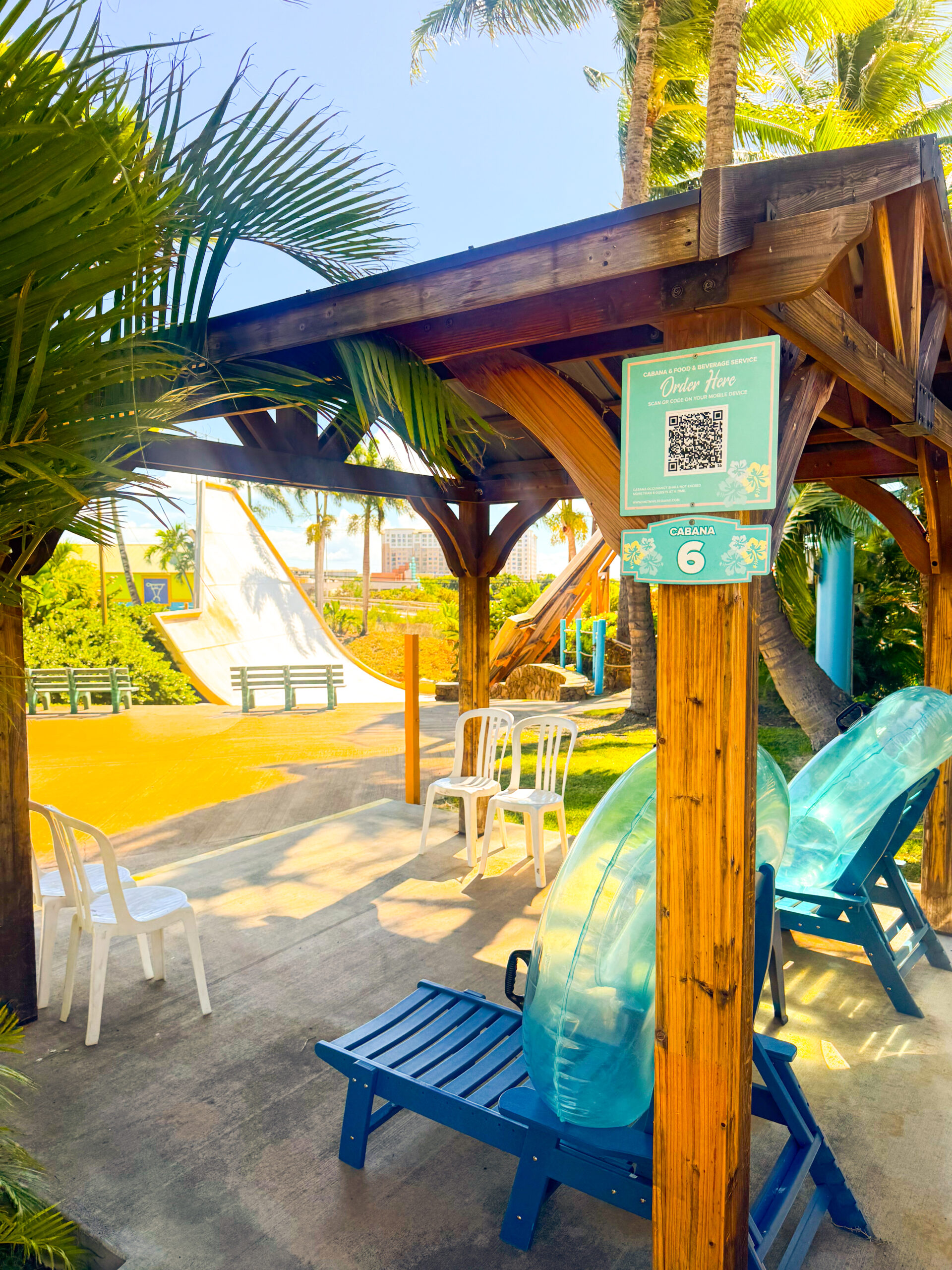 Our newest addition of standard cabanas. These are located right below the Surf Slider attraction and convenient location to the other water rides and attractions.